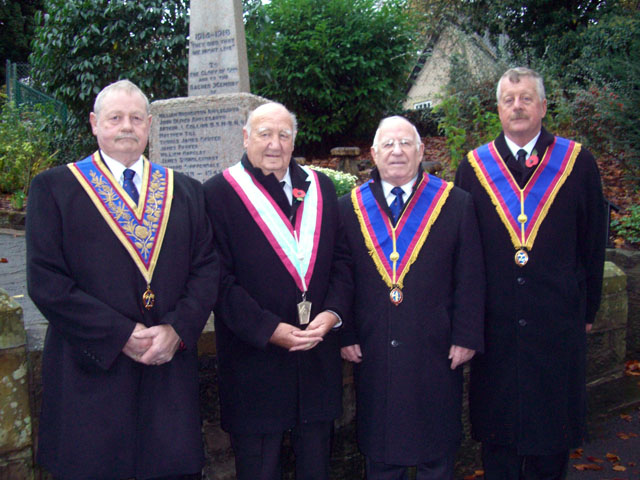 Four members of Scorton Mark Lodge No 1103 attending Scorton Cenotaph to lay a poppy wreath on Remembrance Sunday. |