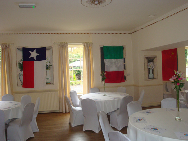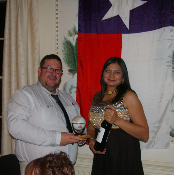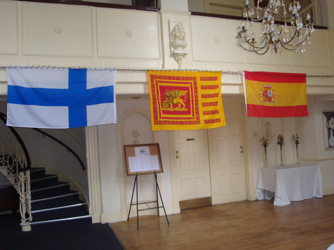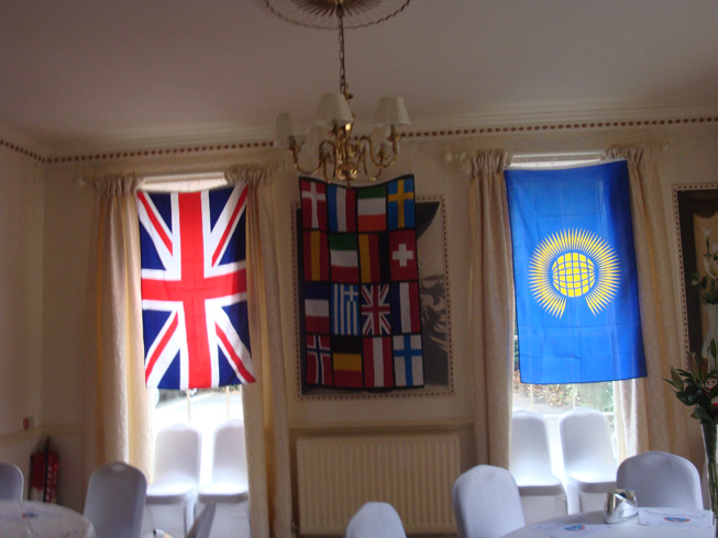 The guest list included the Past Provincial Grand Master Peter Connolly and his wife Lynne. Peter being a Vexillologist supplied flags which bedecked the banquet hall giving the evening a real International feel. |