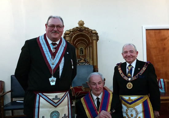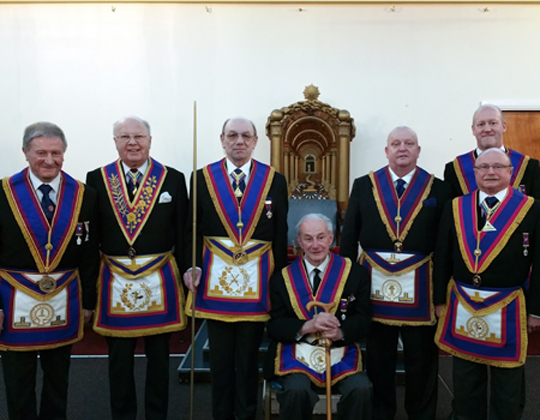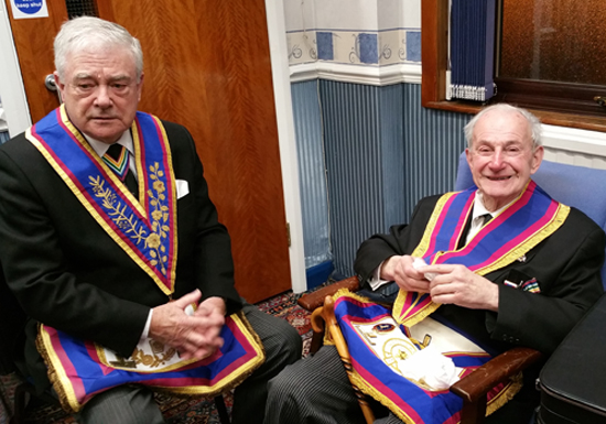 Ronnie, not stranger to anniversaries, has already celebrated his 60th in Craft and Royal Arch, and is also very active in, Ark Mariners, Red Cross and Knight Templar. He occupies the office of Tyler or the equivalent in almost every Lodge he is a member of, and I strongly suspect some he isn’t! | |