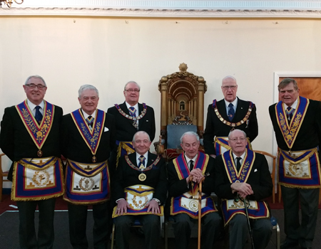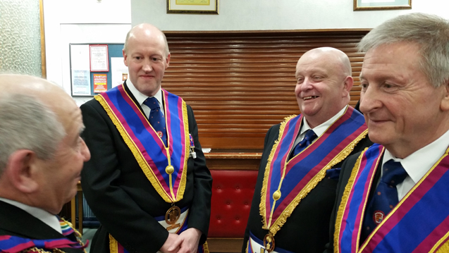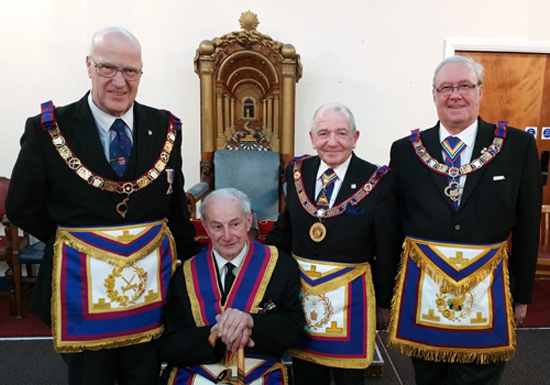 The Master, Mark Holloway, Ronnie Goodyear, P.Prov.G.S.W. and Deputy PGM Keith Beardmore |