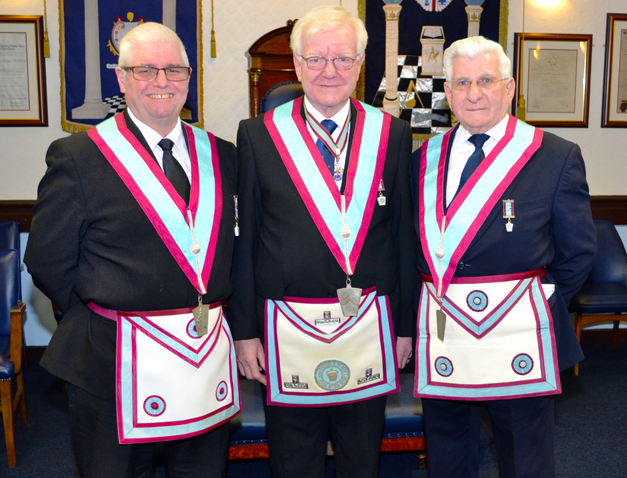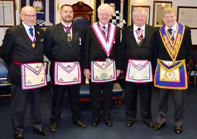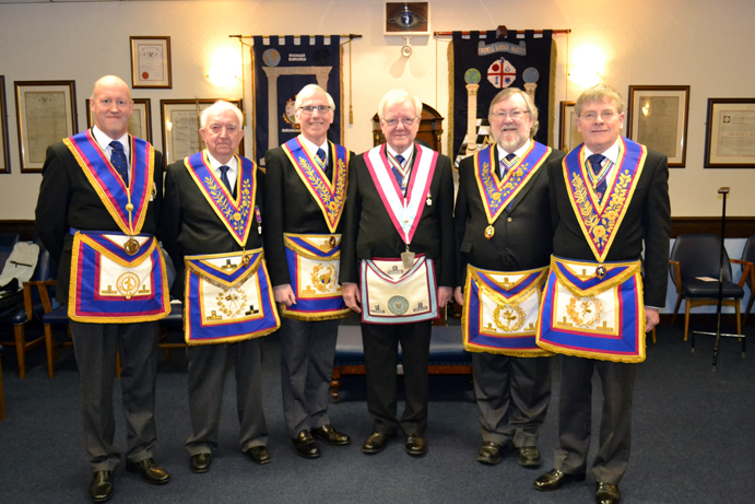 The Worshipful Master was joined by Masters from three other lodges, Rick Woolley from Red Rose Mark, Stuart Wilson from Westhoughton and Len Hart from Leigh Mark. | |