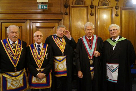 W.Bro Stanley saw W.Bro Michael Collins install Bro Ian Fisher PPrGIWks into the chair of the lodge. After the installation and investiture of offices, W.Bro Stanley congratulated the new WM on behalf of The RW Provincial Grand Master and wished him a good year in office. | |