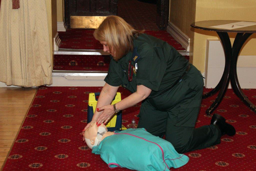 Janet Graham from the NW Ambulance Service reminded us all about the important points - principally that survival rates if shocked within 2 minutes are 75 to 90%. Without CPR and a de-fib machine, the chances of survival drop by 10% per minute......with ambulances targeting a response time of 8 minutes, 80 % of your chances are already gone...... | ||||