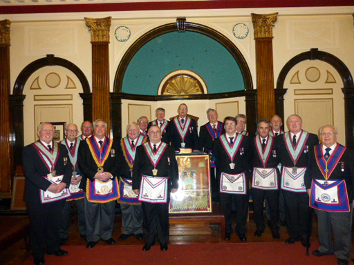 The Worshipful Master Bro Eric Poole had invited W Bro Derek Gaskell Prov G Stwd of George Harradon Mark Lodge No 956 to present the explanation of the Mark Tracing Board. Derek did the explanation in his own inimitable style and to the enjoyment of all present. After the meeting the brethren all enjoyed a very good festive board. | |
