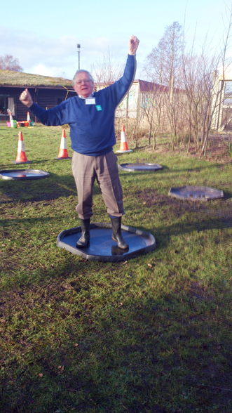 During the afternoon he widened his experiences when he marshaled and helped to judge the 'Puddle Jumping' competition. | |