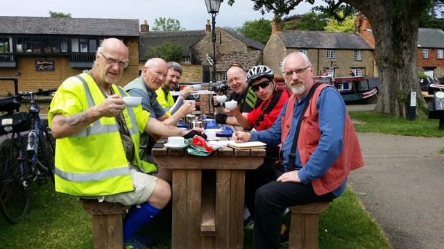 Refreshing Cuppa at Canal Museum left row from front, Steve Walls, Stu Hyde and Dave Fisher. |