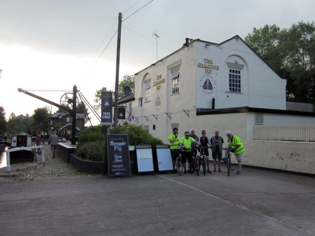 After a nights recovery, and a hearty breakfast the group commenced their second day on the road, well the canal, to be exact. Yesterdays cycling had resulted in a grand total of 73 miles, and as anticipated and planned would be the longest stretch of the ride. Today started by cycling back to the Shropshire Union and then south along the tow path with the first stop at the Anchor Inn near High Offley on the outskirts of Stafford. Set on the Shropshire Union Canal, this Victorian two-bar inn is a rare example of an unspoilt country pub. It has been run by the same family since it was built in 1870, when it was called the Sebastapol, and is run today by 82 year old Olive, with a little help from her daughter and family. |