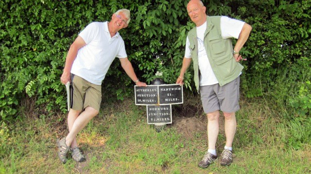 Pic 7. Canal milestone post left to right John Bruffell and Stu Hyde |
