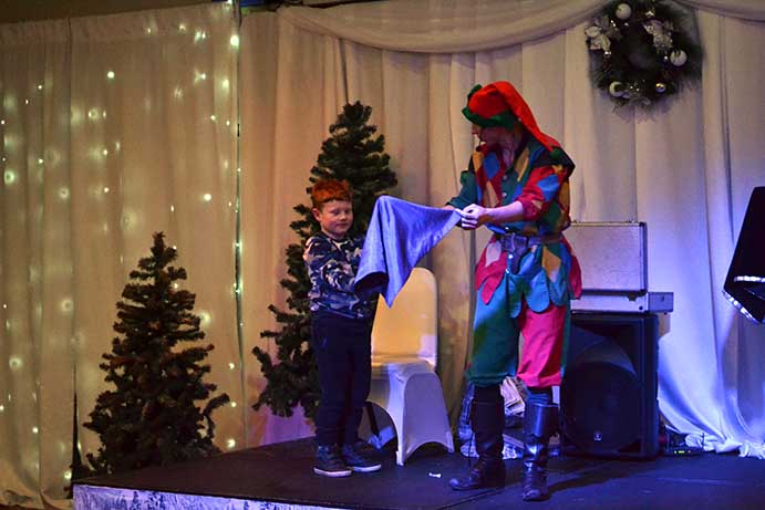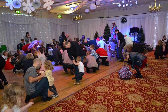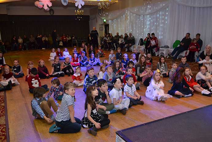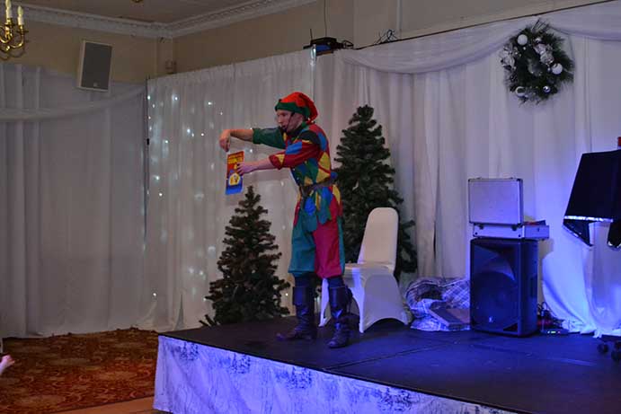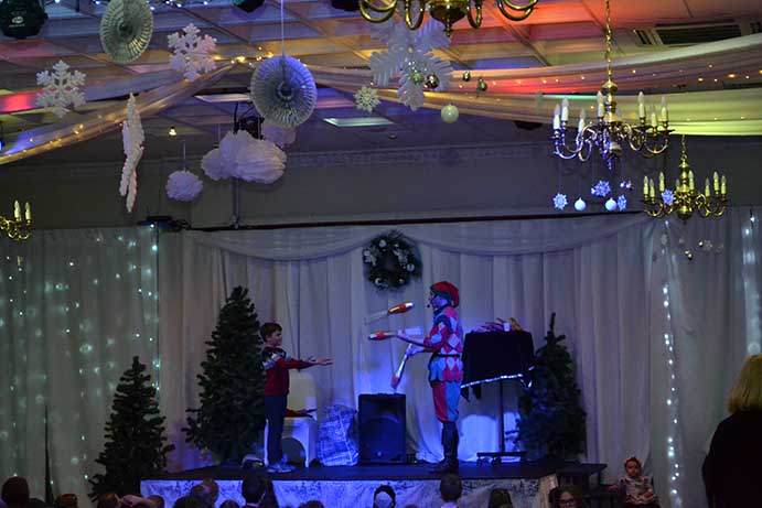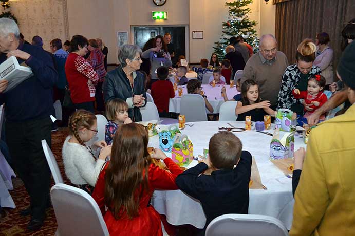 All the children dined during a break in the afternoon before resuming a short session of games with “Scoop” followed by a visit by Father Christmas and his helper Carol Pallister, when every child received a gift.