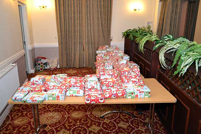 All the Christmas presents ready for presentation to the children