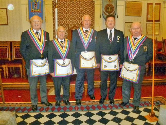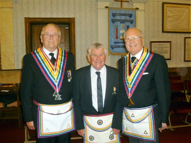 Worshipful Commander Dave Sear is part of Peter’s group team being the craft publicity officer. Helping Dave with the ceremony on the evening was Alan Jones who was Peter’s predecessor as group chairman and Peter Thompson who was his seconder for Furness RAM. Peter gave the explanation of the signs whilst Alan presented the working tools. |