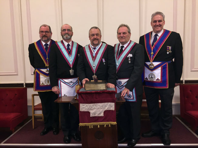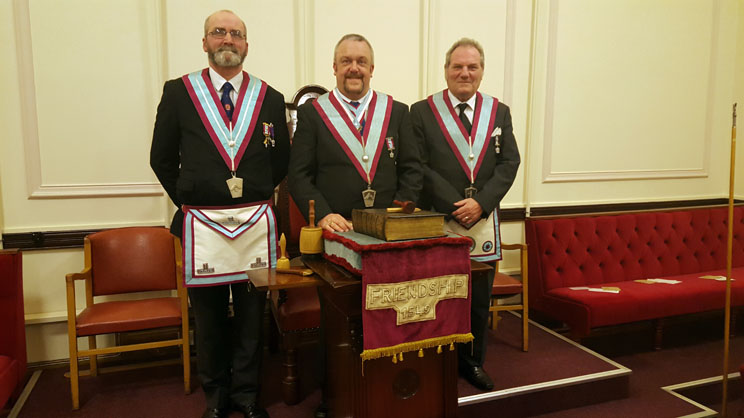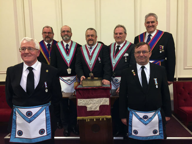 It was a cold, wet and windy February night in Southport when Friendship Lodge of MMM No 1549 welcomed into their fold two Master Masons, Alan Cornes and Alan Taylor. |