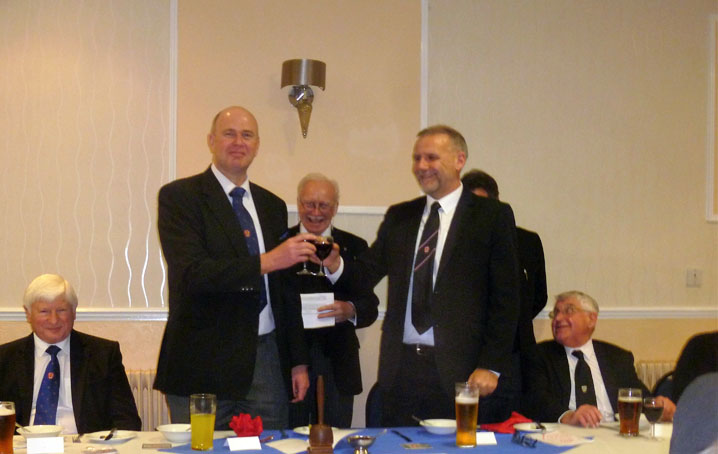 The meal was turkey and proved a very acceptable choice of menu with the catering undertaken by Mike Elliot of the Crown on Walney Island. A retired police officer Barry spoke of the fact that Furness Mark Lodge had brought him back into contact with several former colleagues. His proposer Harry Chatfield was unable to be present but had worked with Barry at Barrow Police Station. His seconder Dave Sear had been his Detective Inspector when he first became a detective. Lodge A.D.C. Ken Boon had been his Inspector when he was a Sergeant on a shift at Barrow and inner guard Ken Parkinson had been on the same shift. They are all members of different lodges but had co-incidentally been re-united by their membership of Furness Mark Lodge. |