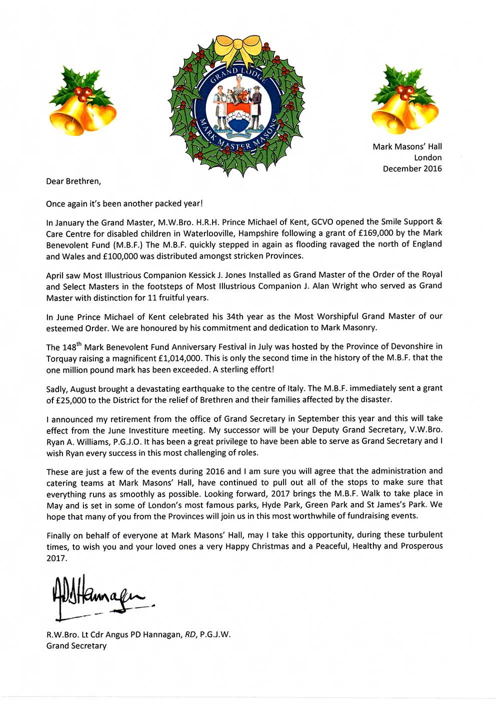 Christmas Message from Grand Secretary
