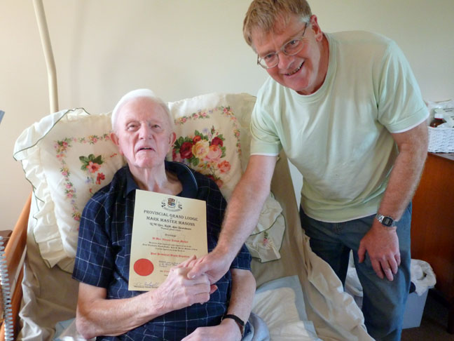 Joe Mather of The Mark Lodge of Charity was due to receive his promotion to PPrGReg in May at Provincial Lodge but sadly he had a Stroke in January which has left him with little mobility on his left hand side. |