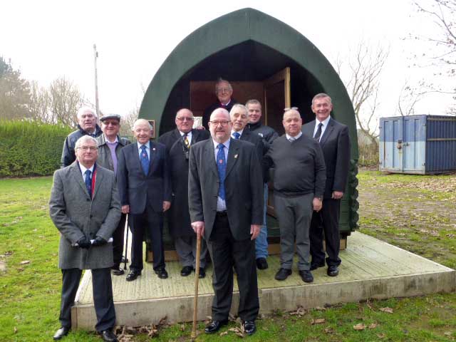 On 6th December the PGM Keith Beardmore accompanied by APGM Michael Clarke and other Mark Mason’s visited Altcar Army Camp near Southport to visit the PODS site which is called ‘Code’s Retreat’. One of the four PODs has been donated by the Provence of West Lancashire Mark Masons and has been named ‘Keystone’. The purpose of the Mark visit was to place a plaque on this POD to commemorate this fact. |
