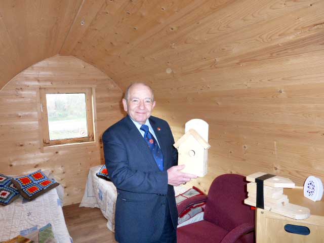 PGM admires one of the Bird Boxes that will be placed around the site. |
