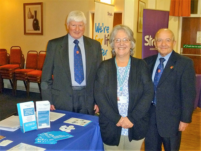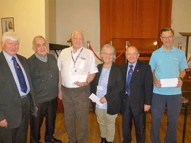 Also present were Dan Phillips of the Stoke Association, Barbara Bradburn of Diabetes U.K. and Tina Fry of the Alzheimer’s Society. Each of the four societies were presented with cheques for £350 by Keith who thanked them for not only agreeing to give the presentations at the various venues but also their sterling efforts on behalf of their charities. |