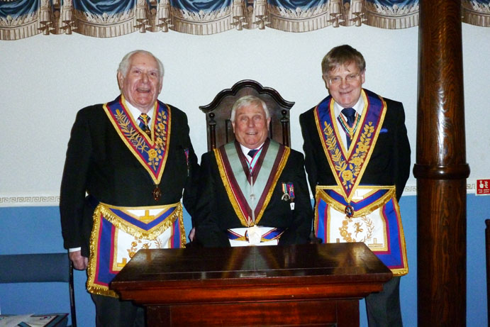The address to the Master was given by W.Bro. Frank Cooke, PGJD, that to the Wardens by Arthur Robinson, PPrGSW, and the address to the Overseers was given by Malcolm Currie, PGSD. Derek Horrocks PGJD Special Representative gave the address to the brethren. |