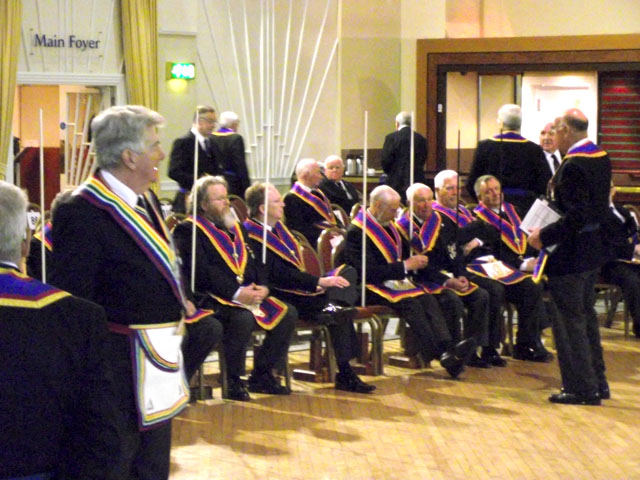 Our Prov.GM then had the great pleasure of investing his new and promoted Provincial Officers. The smiles were so obvious, and the applause so generous, that we were all left in no doubt as to the pride and enjoyment shared by all.  The reports on Charity, the Provincial accounts and the report from John Bicknell, the Provincial Grand Secretary, are all available on the Provincial website, and this meant the meeting was a very brief and efficient 2 hours in length, at which stage we all filled the huge dining room, and were treated to a wonderful meal.