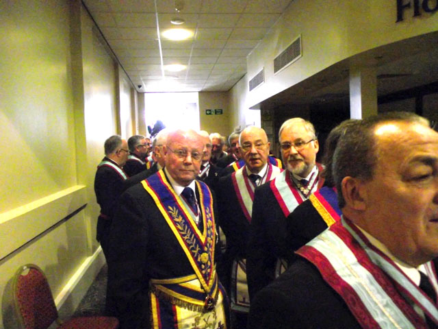 Our Deputy Provincial Grand Master, Geoffrey Lee then gave the toast to the visitors to our Province, which he claims is the best Province....especially ahead of Yorkshire! He thanked the 12 Prov.GMs, 10 DepProvGMs, 7 Provincial Secretaries and 4 Asst ProvGMs for coming, and of course the Deputy Grand Master, for attending our meeting, and making it the wonderful event it no doubt is.  After some valuable advice on travelling to China with the surname of Lee, our Deputy ProvGM concluded by thanking all our guests, and Ernie Gavan the Provincial Tyler finished the proceedings with the Tyler's Toast.  It was just after 7.30, on a beautiful evening in Southport when the meeting was closed, and we all left feeling that the Province of West Lancashire had indeed had a splendid day.