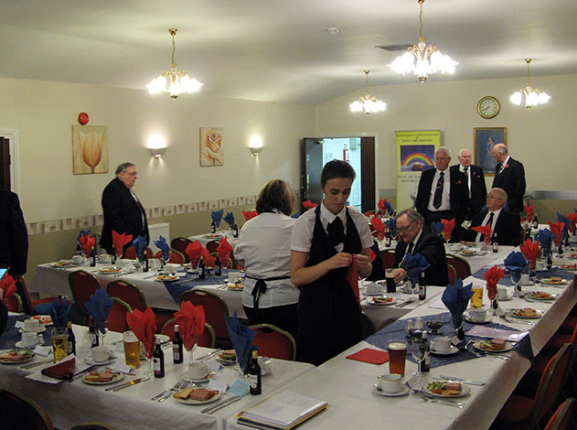 It was now time for the PGM to retire along with his Team members and Grand Officers, before too long the meeting was over, once everyone had made their way to the bar for some light refreshments (drinks) to accompany their meals they took up their places at the Festive Board.