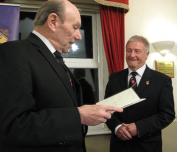 The Lodge opened up on time at 6pm under the leadership of W.Com Bro Michael Winterbottom who has in fact been Worshipful Commander of the Lodge for the past three years, once some of the usual housekeeping minutes etc had been read and confirmed Right Worshipful Brother Keith Alan Beardmore Prov Grand Master entered the meeting accompanied by other Grand Officers and members of his Provincial Team to be welcomed by Bro Winterbottom who as tradition demands offered the gavel to the PGM who on this occasion said he would accept it for a short time so as to introduce the members of his team.