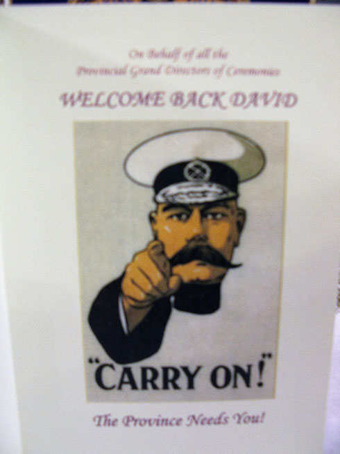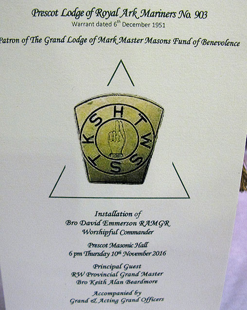 Once the gavel was returned the ceremony to Install W.Bro. David Emmerson RAMGR as Worshipful Commander for the ensuing year commenced. Everyone present witnessed a truly excellent Installation and it could be seen that a very lot of hard work had gone in to it by all the members of the lodge, once all the officers had been appointed and invested the address to the New Commander was delivered by the now Immediate Past Commander W.Bro Winterbottom and the Exposition of the Royal Ark Mariner Degree was superbly presented by W.Bro Michael Clarke PGJD Asst PGM.