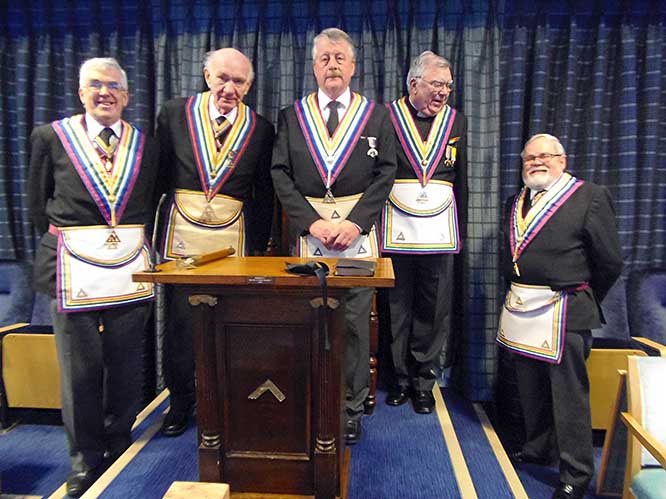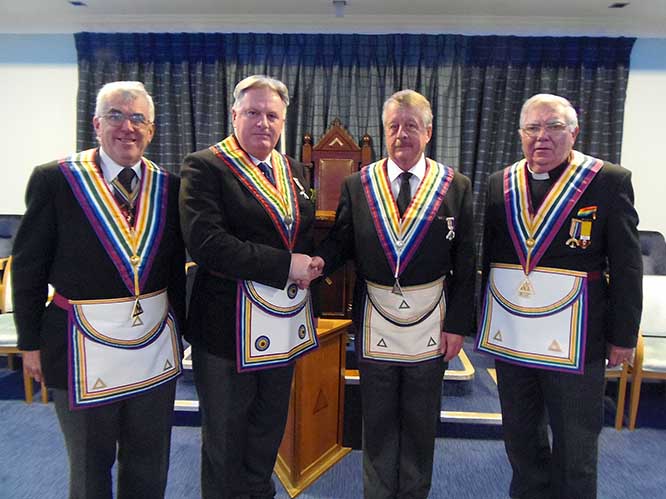 We were also in the fortunate position of having a candidate available for elevation. So advantage was taken to elevate Bro. Gowan O’Hagan a member of Progress Mark Lodge. |