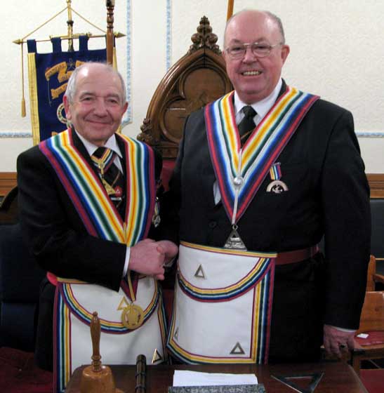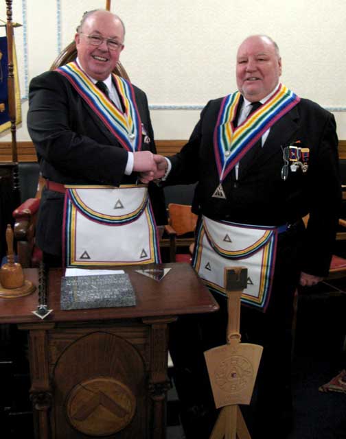 Now to the business of the evening, the meeting was opened on time by the Worshipful Commander Bro.Peter Weller who immediately offered the sceptre to the RW Prov Grand Master Bro.Keith Beardmore who on this occasion accepted it. The PGM then commenced to introduce the members of his Provincial Team who were in attendance, which always makes them feel like they are part of something really special which of course they are before returning it to the WC to continue with the ceremony of Installation. | |
