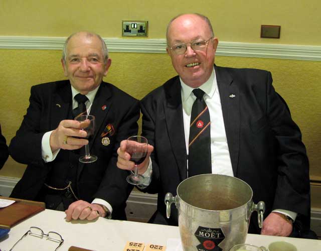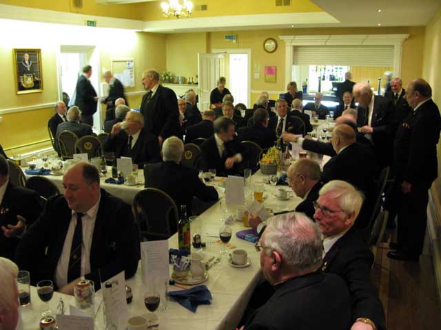 The ceremony being ended all the Brethren made their way to the welcoming dining room and after acquiring suitable refreshments took up their places and enjoyed an excellent meal served up by very pleasant and attentative staff. | |