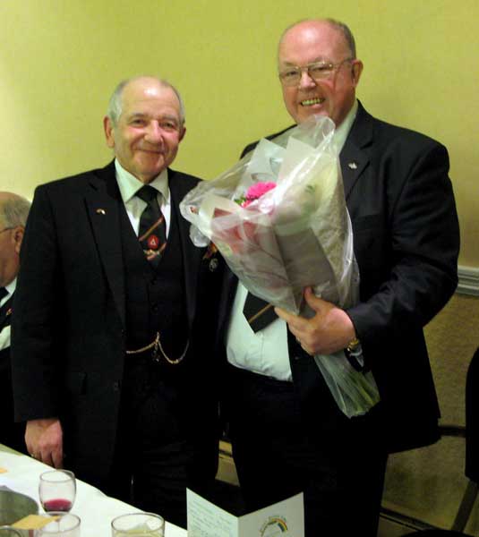 Lots of the usual happy banter during the dinner was followed by the usual Toasts and some admirable speeches, the newly Installed WC had much pleasure in presenting the PGM with a bouquet of flowers for his good lady and as always it was all over too soon. | |