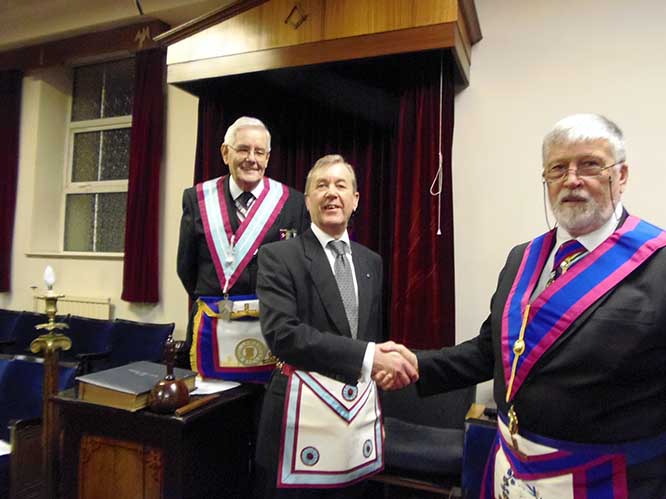 W.M. Bob Dickinson, Bro. Alan Whittle & V. W. Bro Glynn J. Davies PGSO |