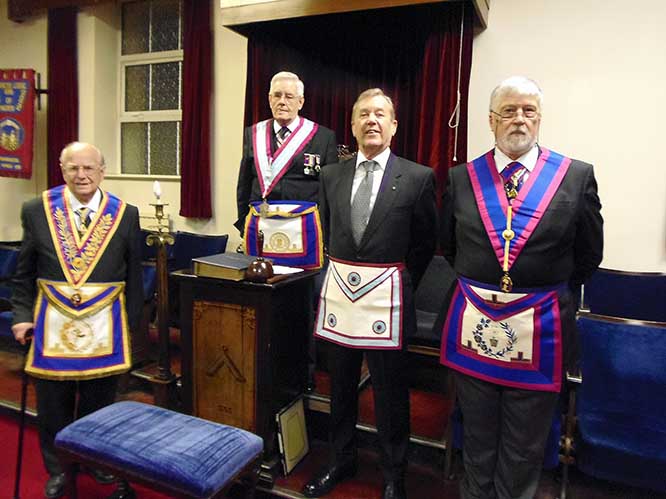 W.Bro. Colin Williams PGJD, WM Bob Dickinson, Bro. Alan Whittle & VW.Bro Glynn J. Davies PGSO |