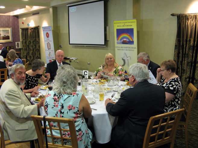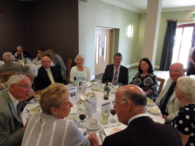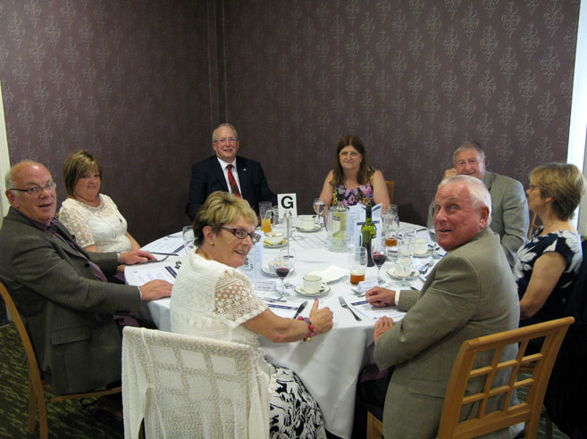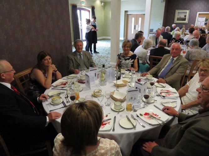 Anyway enough of the traffic, once we arrived we were welcomed into a lovely dining room and greeted by all present and especially the good friends I have made from Barrow in Furness who were seated around our allotted table. After being treated to drinks we settled down to enjoy an excellent meal which included a typical Sunday Lunch of Roast Beef, Yorkshire Puds and rich wine gravy. (and here’s me on a diet), served up in fine style by very attentive staff.