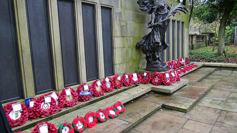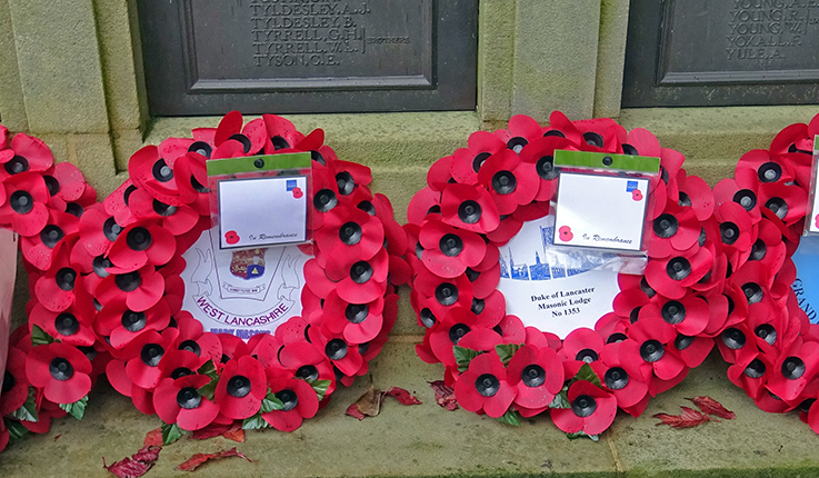 W.Bro. Malcolm Morrison PPrGJD, of Garnett Lodge of Mark Master Masons No.146, laid a wreath on behalf of Mark Mater Masons at the Lancaster Memorial Gardens. He was accompanied by several craft masons also laying wreaths. |