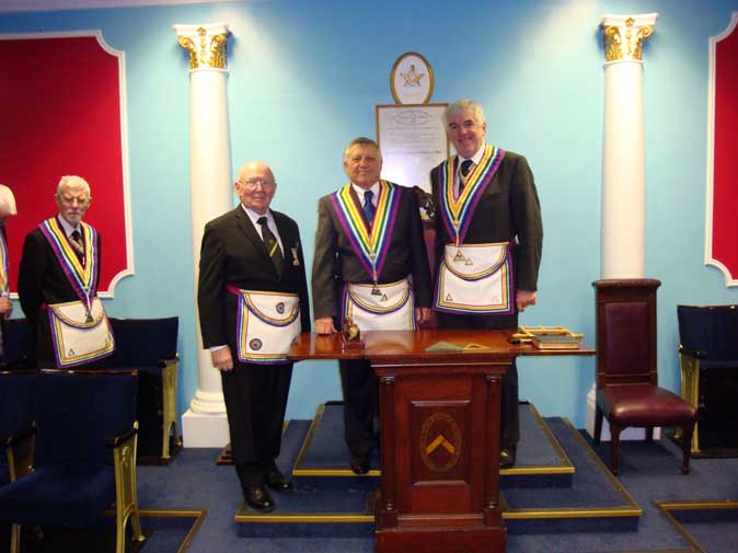 Bro. Dennis Wilson with Worshipful Commander Dave Boylin And W.Bro. Paul Snape. |