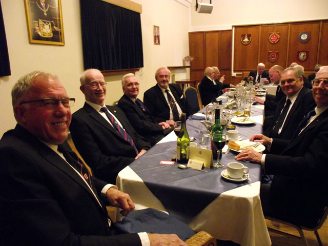 Finally Graham Bailey gave the Address to the Brethren and following Abdul’s announcement, accompanied by the customary huge smile marking the conclusion of his work, Graham brought the PGM’s greetings and congratulations to Alan as the new WM and to his predecessor and to the brethren wishing the lodge every success for the future. |