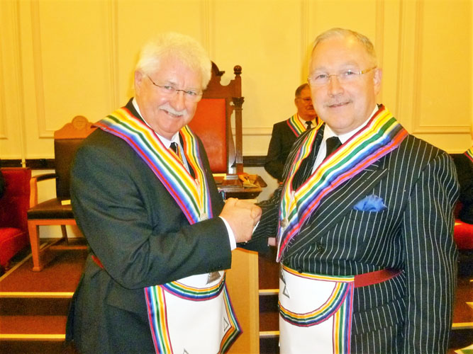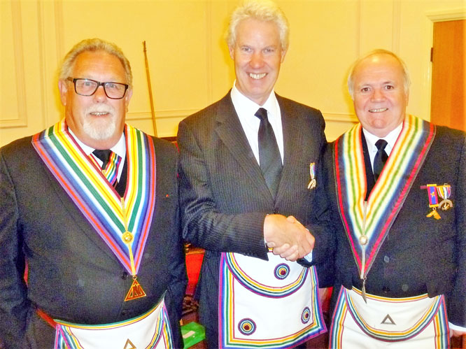In 2015-16 Malcolm had served as Provincial Grand Senior Overseer in the Mark degree and had become good friends with his fellow overseers Austin Fletcher and Keiron Mullan who are both RAM members. On the evening Austin had to tender his apologies as other commitments prevented him being present, but Keiron made his way down to Southport from Barrow in Furness to support Malcolm. |