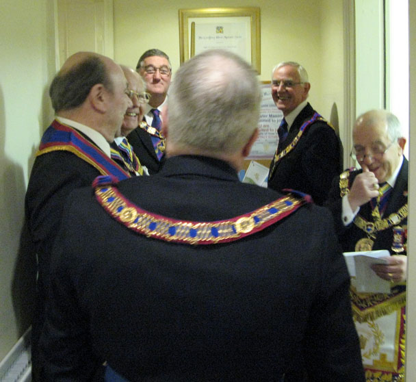 The Lodge opened on time and as was to be expected did take some time to deal with its housekeeping at this inaugural meeting these included the Minutes, a Ballot for a number of Joining Members, to receive communications, Elect Auditors etc, then it was time for the R.W. PGM to enter the Meeting accompanied by Grand Officers and members of his own Acting Provincial Team. The PGM was warmly welcomed in to the Lodge by the Acting W.M. W.Bro.Bryan Humphries PAGStdB who was standing in for the W.M. Bro Peter Brown due to illness, he was by right offered the gavel which on this occasion he accepted. The PGM then gave his personal introduction for the benefit of Lodge members of all his Provincial Team present, which is always much appreciated by those officers and makes them feel part of something very special. (after all this is the Mark Degree)