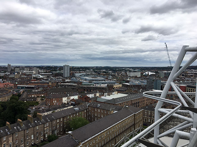 After being kitted out with the necessary PPE and being given a safety briefing, the pair boarded the service elevator to the 7th floor. Having navigated their way through the roof space the final few steps lead to the roof. |
