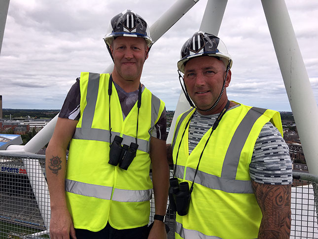Tony is a supporter of Newcastle United and attended the match on the Saturday and whilst enjoying a post match beer with Chris, mentioned his wish to undertake the roof top tour of St James Park. Chris was happy to accompany Tony so the tour was duly booked for the following afternoon |