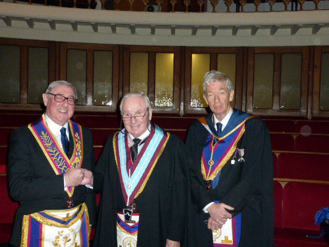 In a full lodge room the WM, W. Bro Ian Fisher, LLB P. Prov G I. Wks, installed his successor, W. Bro John Price MA, CEng, FIMechE, P.Prov.G.J.W.The explanation of the working tools was done by W. Bro David Roberts, I.Eng, ACIBSE. |