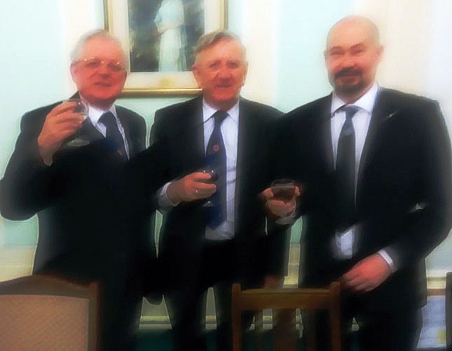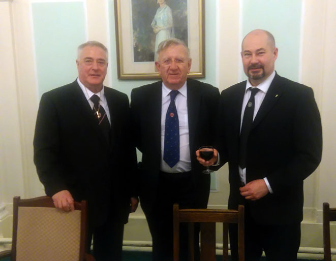 Andrew was wearing a lodge Kilwinning tie: his brother is currently WM of Lodge Kilwinning, number ‘0’! Andrew explained that their Installation ceremony started at 2pm with a public procession around the town, led by the pipes. It finished at 11pm. West Lancs 65 finished a bit earlier! |