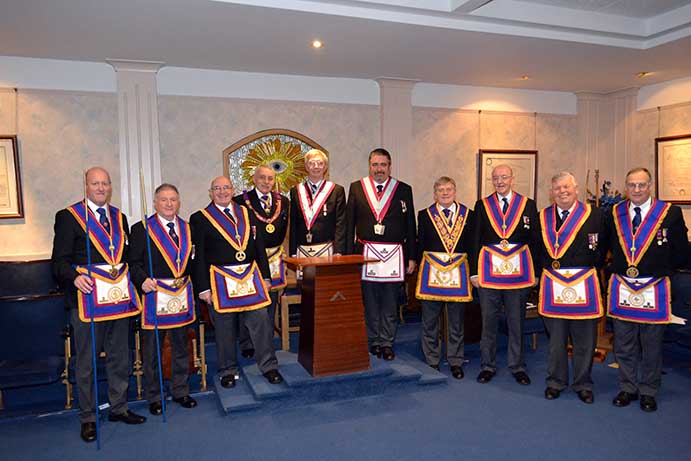 It was a good turn-out for the Installation of John C. Hesketh as Master of this fine Lodge, especially as it took place in the presence of Assistant Provincial Grand Master, Michael J. Clarke and the Provincial Grand Master’s Special Representative for the area, Kenneth Alker, who was accompanied by several acting Grand Officers and other senior brethren including the Provincial Wardens, Senior Warden Alan Foster and Junior Warden Alan Fairhurst who gave the addresses to the wardens and overseers. |
