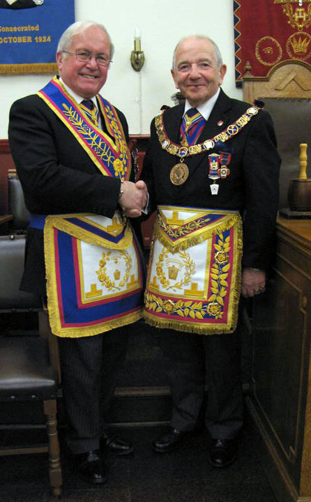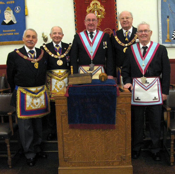 All the incoming officers of the Lodge for the ensuing year were presented and invested with the jewel of their office, then followed the address to the newly Installed WM which was given by W.Bro. Brian Horrobin, address to the Wardens by the Prov. S.W. Andrew Whittle, address to the Overseers by the Prov. J.W. Tony Cross and of course the address to all was given with warmth and sincerity by the PGM.