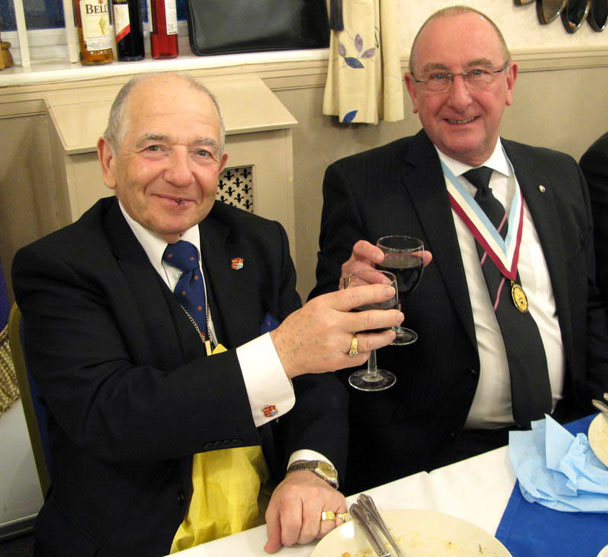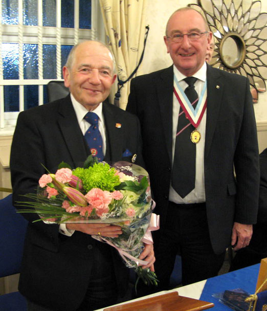 A superb meal which included wine was delivered by a very efficient and friendly staff, the usual Toasts and some interesting happy speeches were given all of which were well received, sadly it was that time again for us all to depart to our own homes and firesides but just before the Tyler’s Toast a lovely bouquet of flowers was presented to the PGM for his very understanding and supportive wife June.