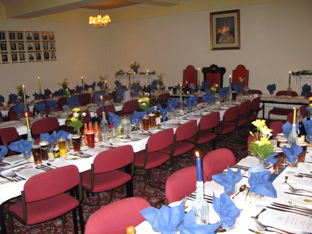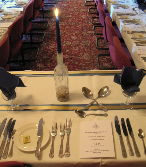 Anyway now the reason for today’s visit to Holmfirth, a Lodge meeting at the Holme Valley Lodge No.652 which has been in existence for 150 years, notice the spelling is different from the town, the main business tonight was a Talk on 300 years of Grand Lodge, 200 years of the Province of West Yorkshire and 100 years since the purchase of the present Masonic Hall. Usually there is a ceremony of one degree or another but not on this special occasion, after the talk and closing the meeting there was a seven course Banquet to celebrate the 3-2-1 in the meeting and the Tercentenary. Before the meeting canapes were served and Champagne, what a shame I’m on a diet. The Masonic Hall houses only Holme Valley Craft Lodge and one other Degree the Chapter of Industry, what a shame that they don’t have a Mark Lodge.