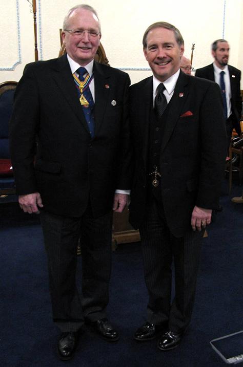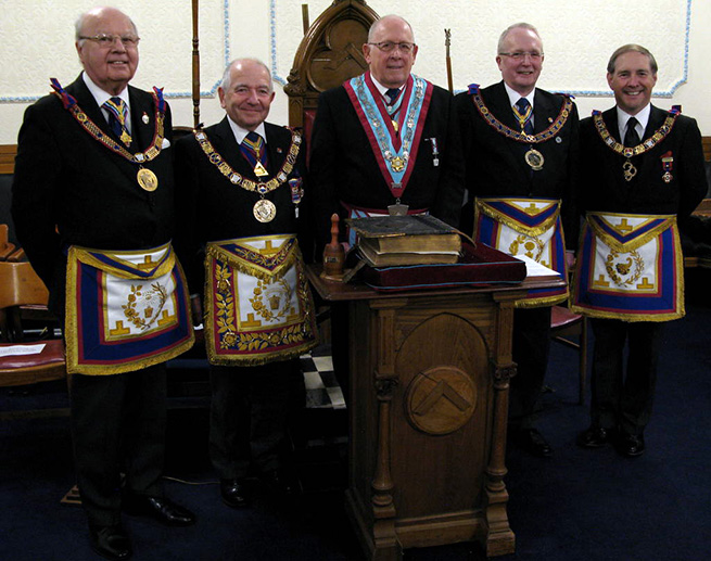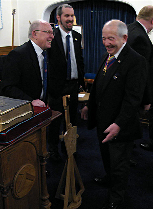 Now to the special meeting which opened on time with several members arriving late in a state of panic due to heavy traffic congestion, they were suitably calmed down and then entered the Temple to take up their places. Once the Lodge’s own housework had been completed the time had arrived for the RW PGM Keith Alan Beardmore along with Acting Grand and Provincial Grand Officers to enter, after being presented to the WM Bro.R.A.Smith the PGM was offered the Gavel, he thanked the WM for his kind offer but just for once he was going to sit back and enjoy the presentation with all the other brethren and was very happy to hand the gavel back. |