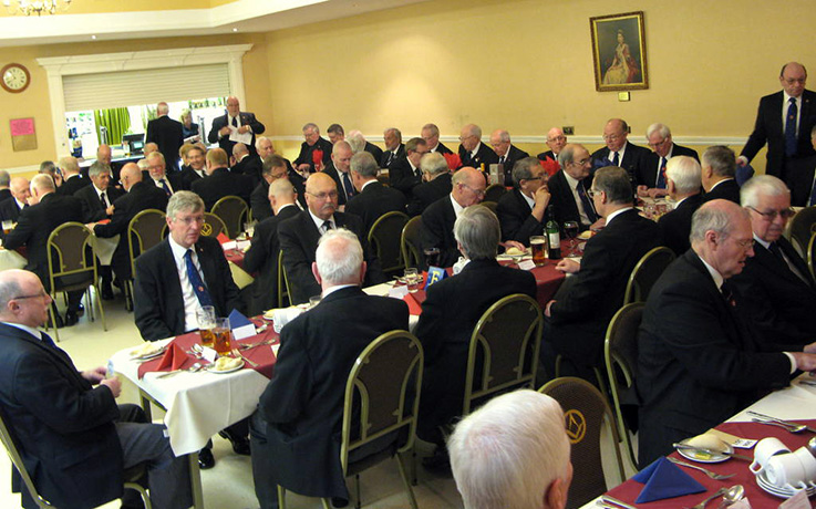 Downstairs, glasses charged everyone including five visiting WM’s took up their places at the Festive Board, lots of chat and smiles all round, an excellent meal was served up by very attentative staff and it was then on to the usual Toasts and responses which were all well received, including the highlights which we all look forward to the Toast to the PGM from V.W. Bro. Ian Nairn Asst PGM and the response to that Toast from our own PGM. |